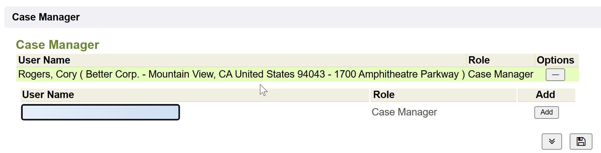 - Case managers in Enterprise Health are stored as user role id #39 which is Case Manager which is stored an encounter user relationship on encounters that have this section to capture Case Manager on an encounter. You can then filter and run incident/case reports by a specific case manager(s) documented on the patient’s/employee’s encounters that get case managers assigned to them.