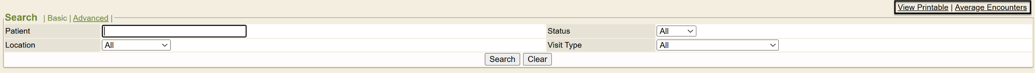 The Encounter search screen will open.