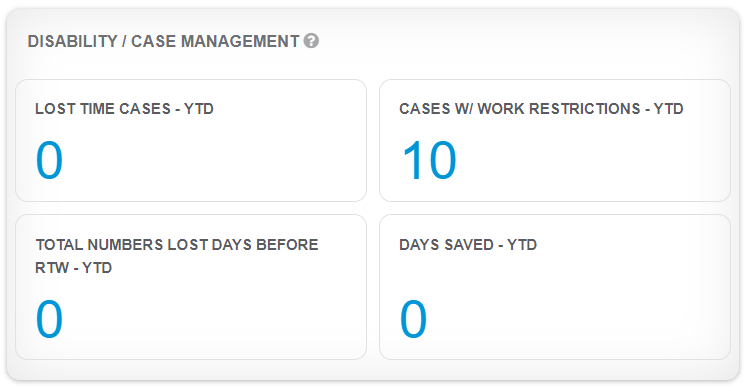 Lost Time Cases - YTD Sums the year to date total of open & closed case management encounters with a linked case where a “First Day Missed Work” observation has been indicated.