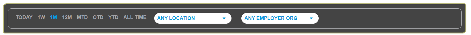 The top of the dashboard contains a search engine that can limit information that displays in the portlets based on time frame, location (PO) and Employer Organization (EO).