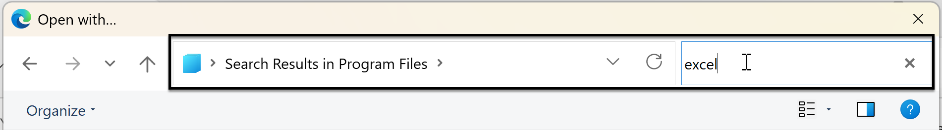 In the search field begin typing the word excel