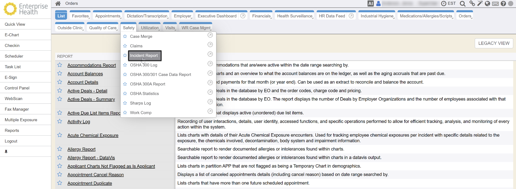 From the Reports sidemenu, click on the Safety tab and select the Incident Report.
