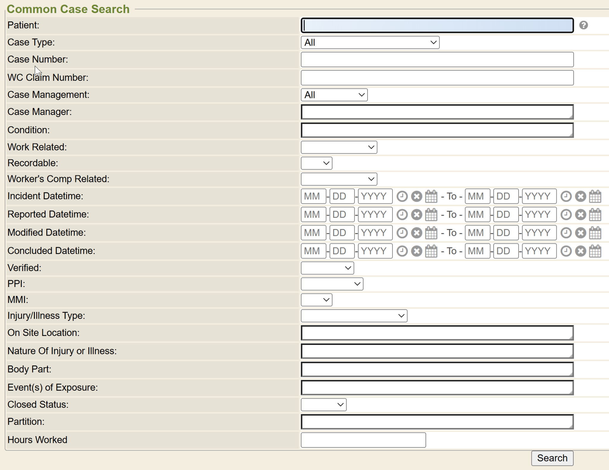 After clicking on the Incident Report, you will be taken to the Incident Search screen.