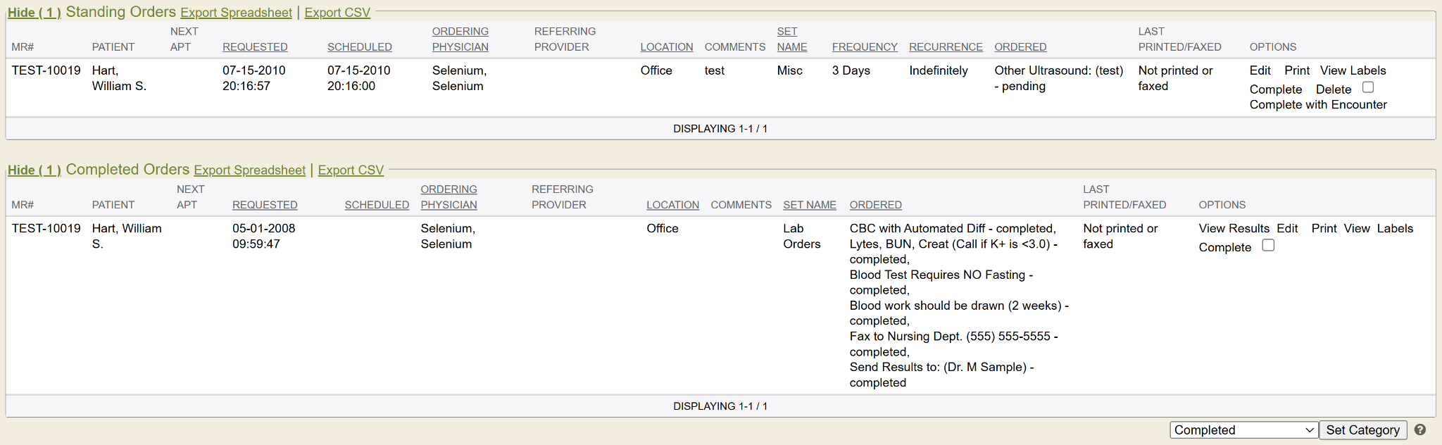 Click the SEARCH button to render your results. It reports on Incomplete Orders, Standing Orders and Completed Orders.