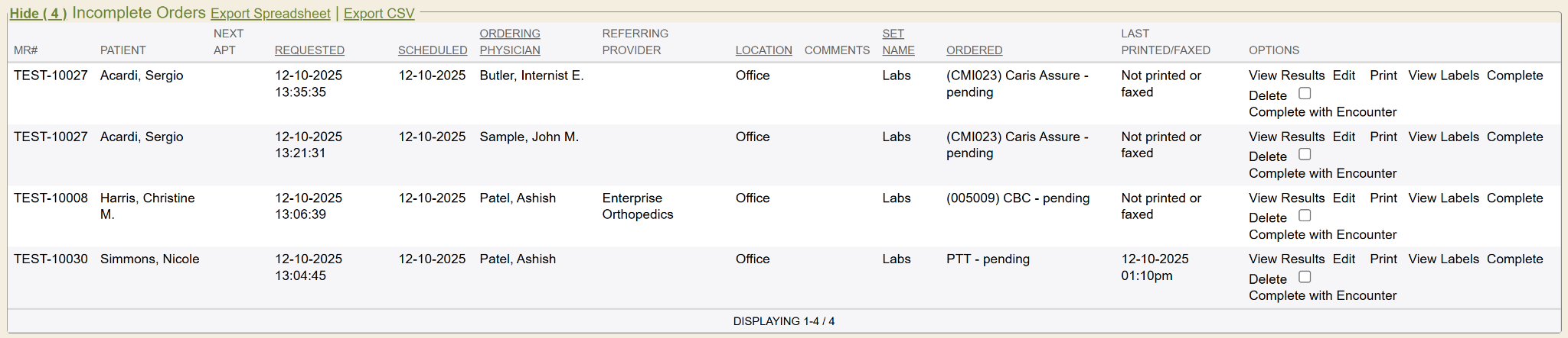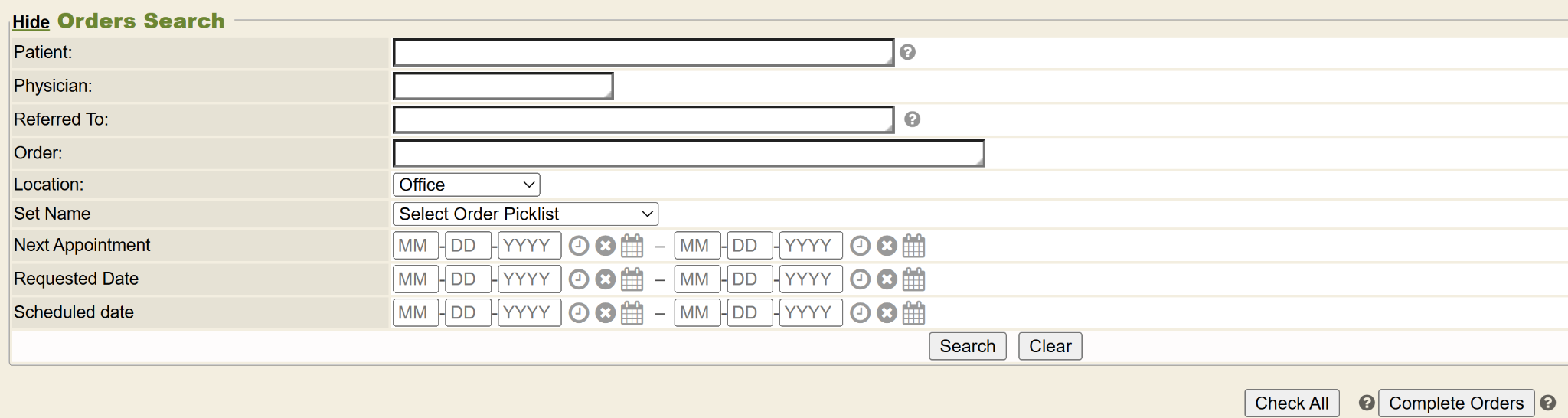 - Patient: begin typing a patient’s last name and use the autocomplete to select the patient if you wish to show results only for a specific patient.