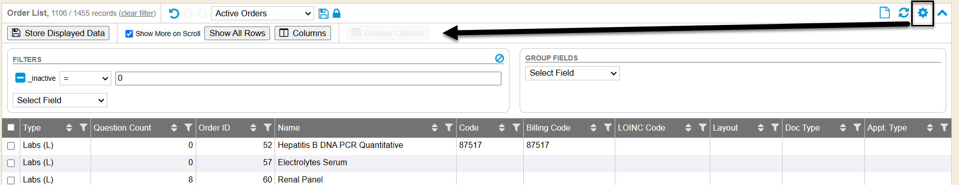 - Use the gear icon to show/hide the grid controls (where you can set the filter, group, pivot, and aggregate functions: see following screenshots).