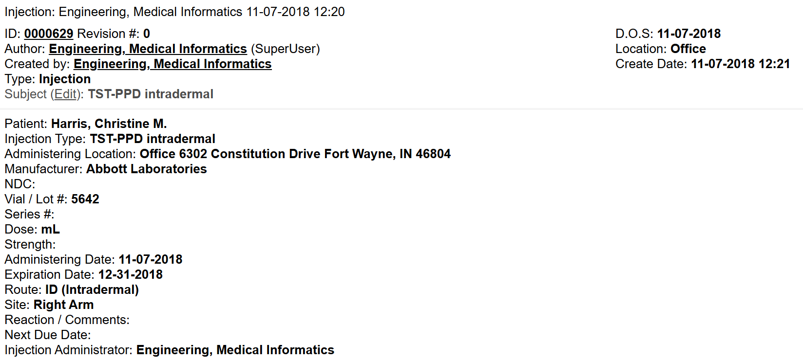 Injection data is stored as a document, and will display within the appropriate tab of a chart.