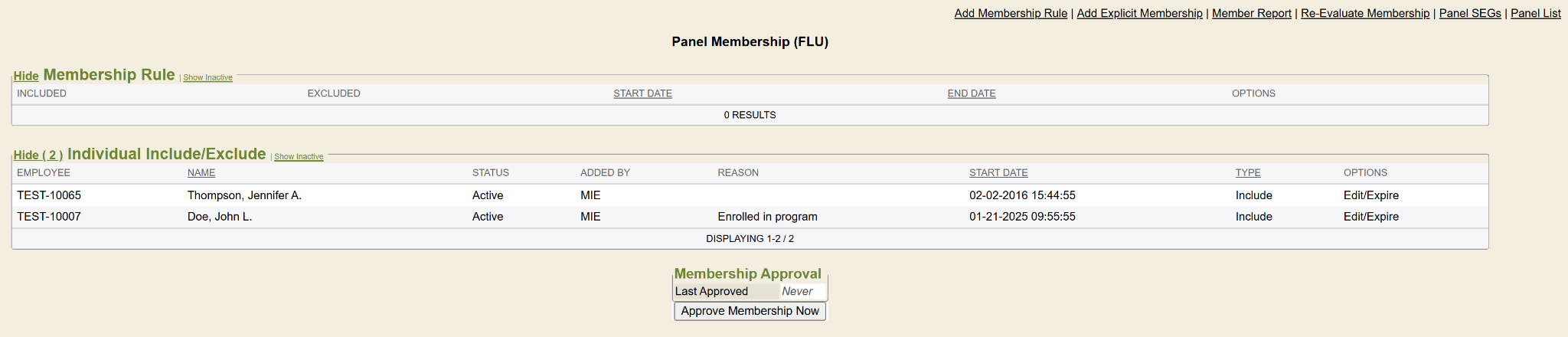 There is an editor to automate business rules for which employees should be added or removed from panel membership. In addition, a system administrator may also manually include or exclude specific employees from the panels.