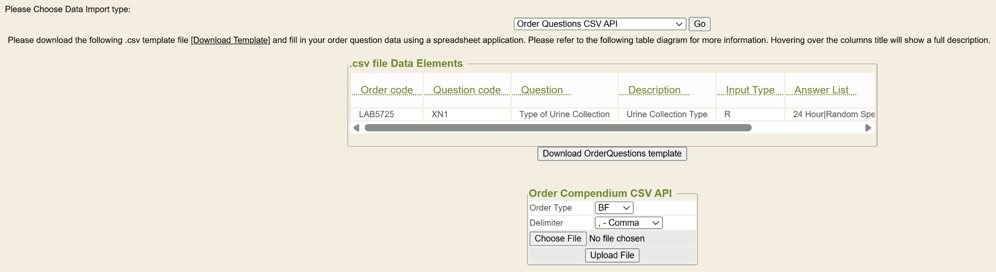 An order is a term used loosely when any method is used to request tests, labs, radiology studies, or E-Orders. Each lab vendor has specific test codes that they use to result ordered tests. The Order List Compendium CSV API loads them as orderable items in EH.