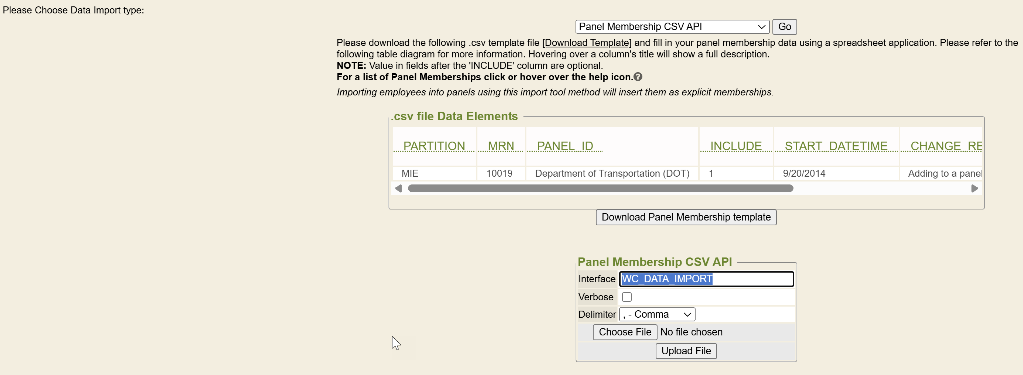 The Panel Member CSV API is used during initial setup to import employees to the appropriate surveillance panel.