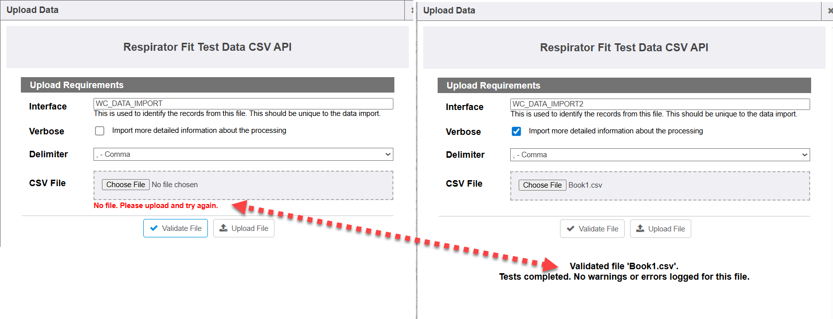 After browsing to select the file to import, make sure to click the Validate File button before beginning the data import upload. The Validate File button will analyze the data in the file to alert you of any issues (or of a successful file with no warnings or errors) before you click to Upload File to begin the import process.