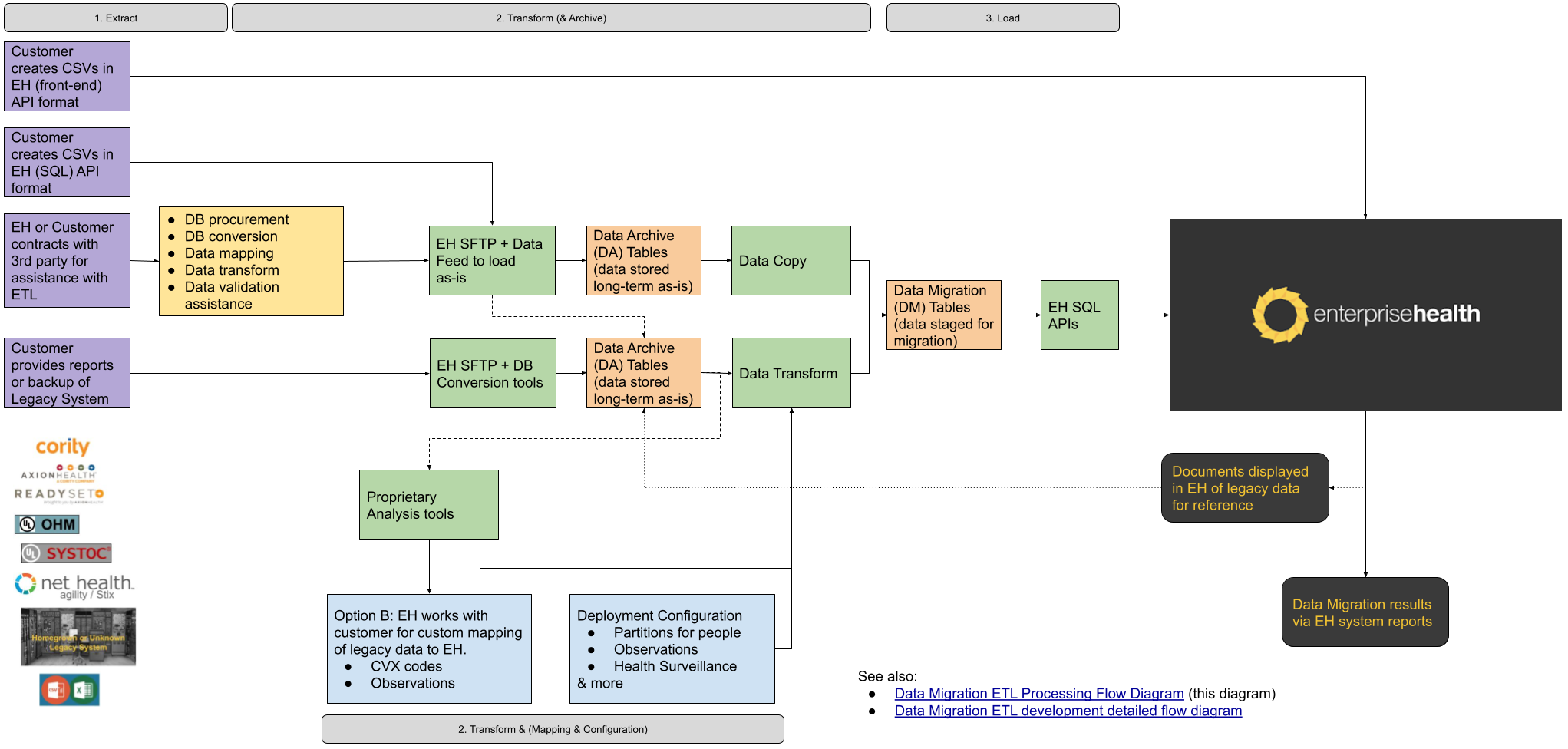 In an effort to transition in full or in part off of legacy system(s), Enterprise Health will migrate data modules in discrete and/or in a summary format as identified in the corresponding client-specific Data Migration Requirements Document.
