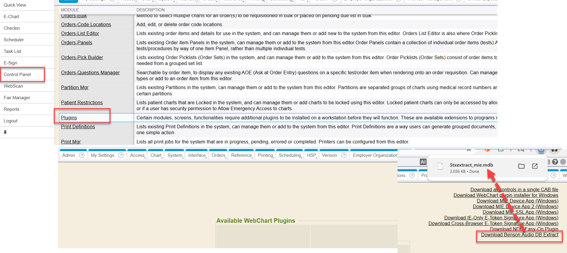 - The configuration file is available in the Plugins page of the Control Panel in Enterprise Health