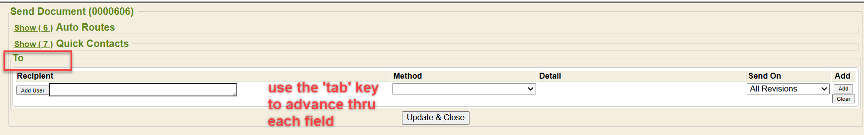 b. <strong>Method:</strong> Select ‘Direct Email' from the drop-down if isn't already (Tab)