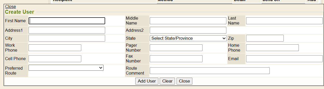 If the referring physician recipient isn’t found in the auto-complete search, you can ADD USER to the system from this screen.