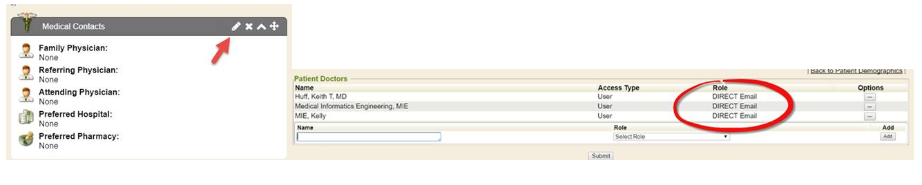 - On the “Direct PO, Direct” chart add these users, by adding them to the Medical Contacts portlet.