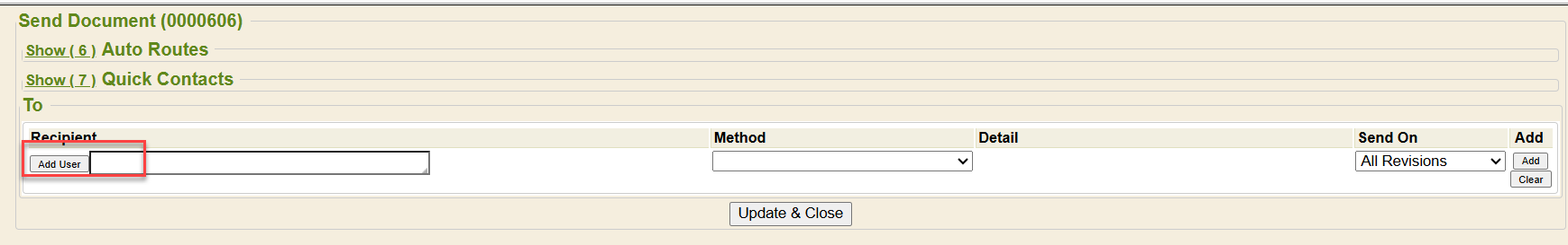a. <strong>Recipient</strong>: Search & select an existing configured referring physician user (configured in your system) from the auto-complete (Tab). If the person isn't found, you can add a user to the recipient selections by using ADD USER button (see separate steps)