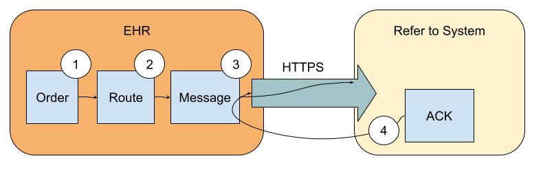 - The transport (usually HTTPS REST, but also MLLP over VPN is initiated by DataSend to Refer to System based on the RTS setup