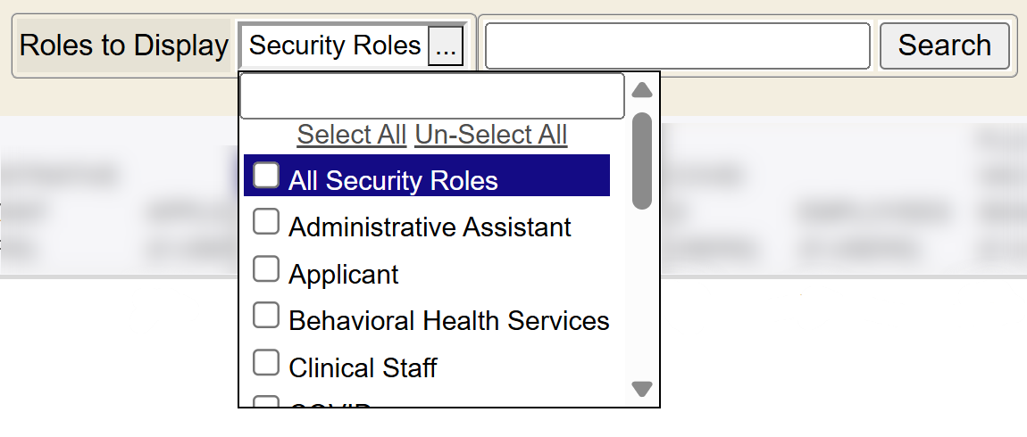 This will now display your search results for only those selected specific security roles you check-marked.