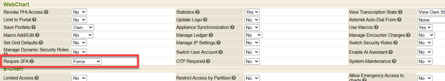 However, a permission to ‘Encourage’ to have users login using WebChart EHR Multi-Factor Authentication (MFA) or 2FA is available and an overview of its user experience is in a separate guide. Systems that utilize SSO (single sign-on) will not be affected.