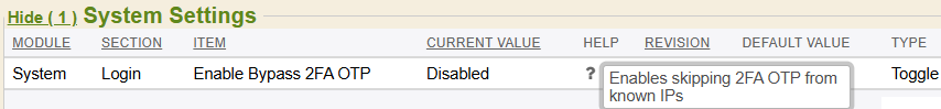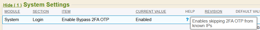 Once the IP address(es) have been added to the IP Settings, set the system setting Enable Bypass 2FA OTP to enabled value. This will allow those known configured IP addresses to skip MFA/2FA.