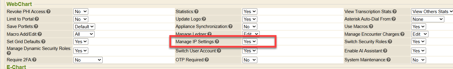 NOTE: In order to configure IP addresses to be able to Bypass 2FA, you must have security permission to Manage IP Settings as Yes.