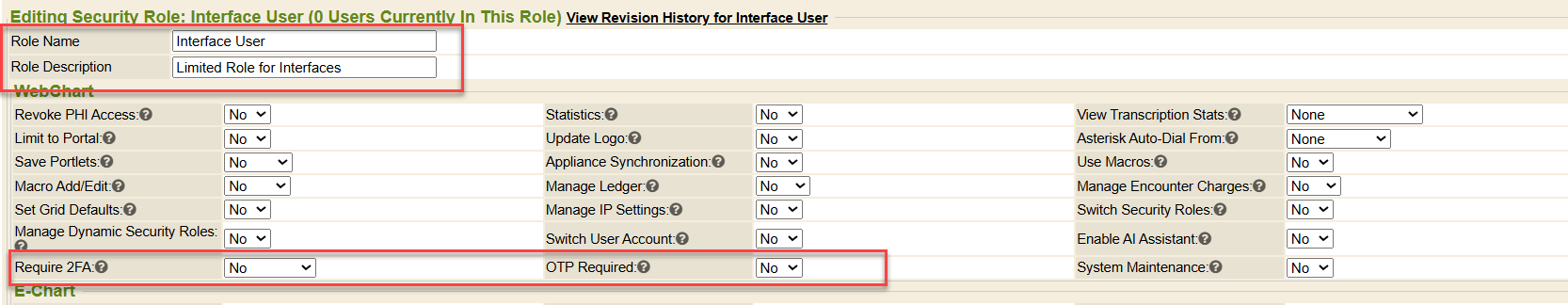 - WARNING: Some interfaces utilize a user account for their functionality. Typically these interface configured ‘users’ are within the security role of Interface User. An interface configured ‘user’ should never be set to require 2FA nor OTP, for the interface to continue to function properly.