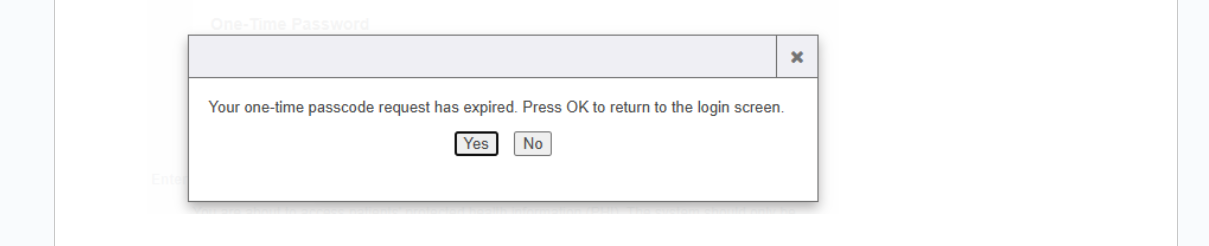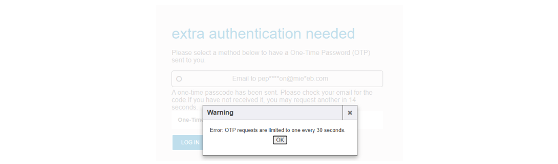 However, if the user attempts to request a new OTP before the timer has expired, the user will receive a rejection notice if they click the bar/button to Email to their email address again.