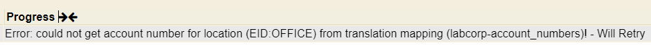 - Error: could not get account number for location (ABC:OFFICE) from translation mapping (labcorp-account_numbers)! - Will Retry