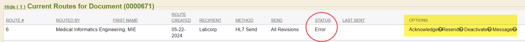 Depending on the error, the user may be able to fix the issue and resend the route. Some routes will resend upon editing the document/demographics/appointment, etc.