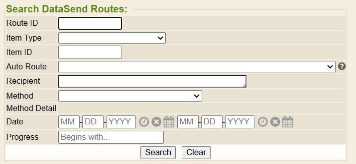 - By clicking the ‘Add Route’ link in Datasend Queue