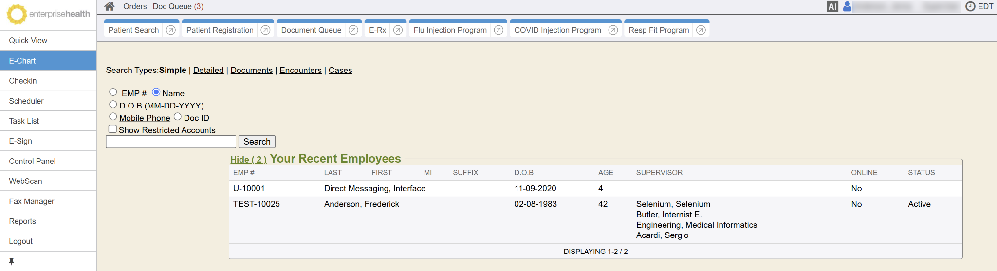 When a user is set to Limited Access, when they work in Enterprise Health and search for patients, they only see the matching specific patients that are ‘their’ patients.
