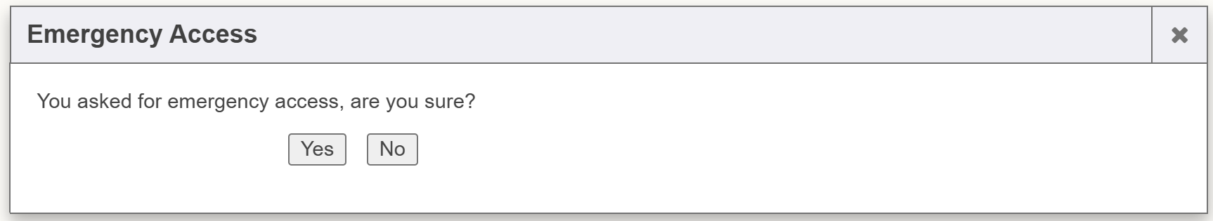 Once they click here to gain emergency access, it will pop-up another dialog box to confirm they want to continue to gain entry via emergency access. Click Yes to proceed.