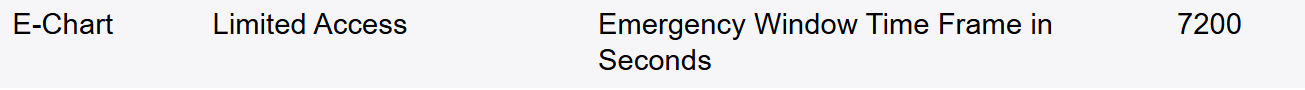 The time the session expires is usually set to 2 hours, but it is a system setting that the practice can change (or contact your MIE Implementer). Emergency Access sessions for your practice can be set to a different amount of time other than the standard 2 hours. The system setting is set by ‘seconds’. The normal 2 hour default is set as 7200 seconds in the system setting, but again system wide it can be changed to any amount determined by the practice.