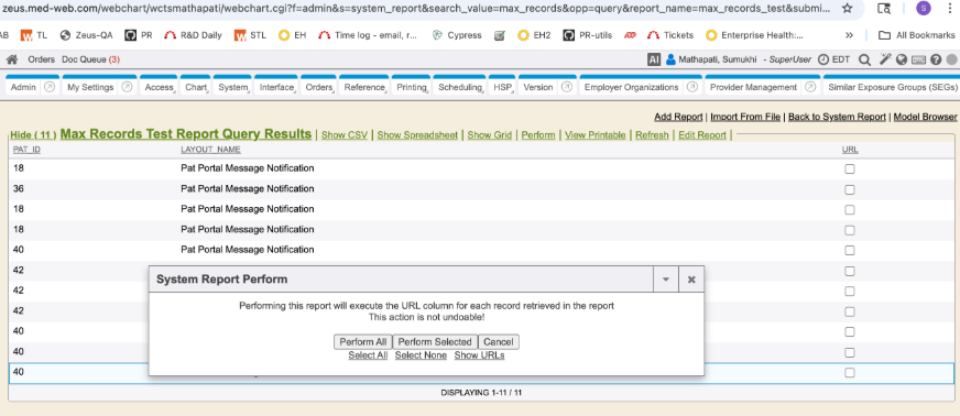 A system admin can then manually run the associated system report, review and decide whether to proceed with performing it (Perform All button). This manual execution serves as the approval step. The other method is to simply remove the Max Records value from the scheduled job itself and manually execute the scheduled job to run, and after it has run entirely, the system admin can place back the Max Records value to take effect in the next run.