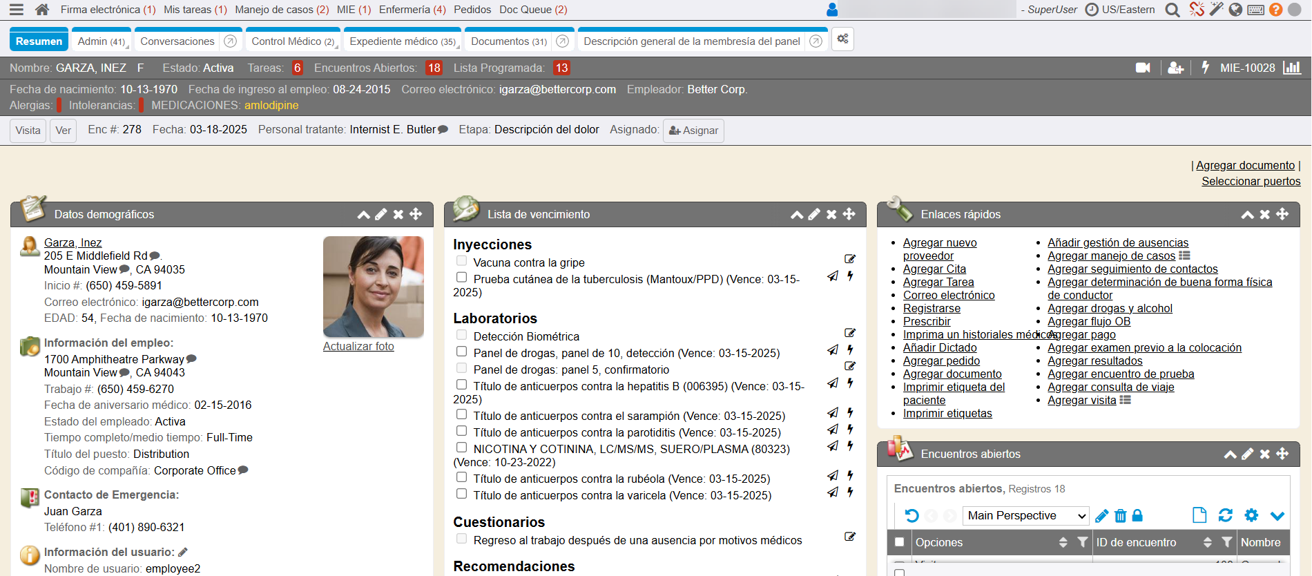If that is set to ‘show’ then you can be in Enterprise Health and use your mouse to hover over a translated/different language word, title, section, chart tabs, sidetabs, or anything that is translated and you will see it’s English translation. Here is an example where my mouse is hovering over the Fecha de Inicio column title and it shows me the English translation for that column title which is “Start Date”.
