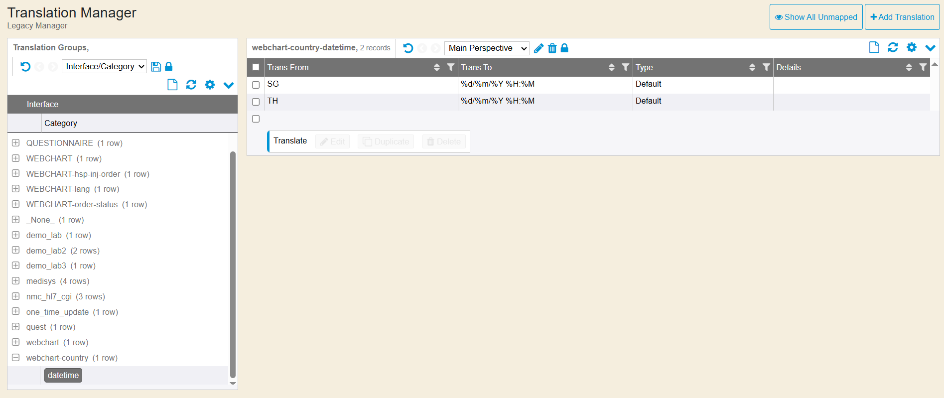 For multilingual systems, the appointment start date and end date fields that are shown on confirmation emails can be formatted in a way that depends on the patient’s country. Many different countries/languages show a date format differently and you don’t want the patient to read it wrong. In English, it’s Month/Day/Year – but other countries change that around and you want to make sure the patient comes in on the correct date if sending a confirmation email in a different language. For each country that a practice needs to customize, a translation needs to be setup for WEBCHART-country-datetime. Contact your MIE Implementer to do this in the Translation Manager. The Trans From column is the country code (US) and the Trans To is a format understood by the C function strftime, eg: %m/%d/%Y %H:%M
