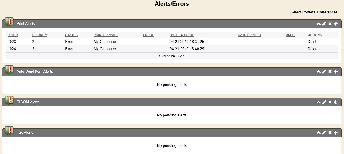 You can also see errored print jobs via the “Alerts” module via the taskbar at the top if any are errored out or via the Quick View sidemenu tab as a module. See other help documentation named Alert-Errors-Failures-Interactive Tab.pdf