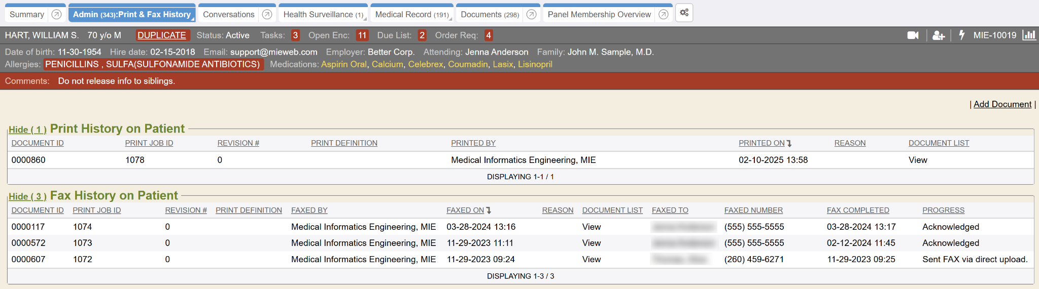 The chart tab found in an individual’s chart named Print & Fax History also shows the Print History pertaining to documents specific to the patient you are in. The Print Job ID hyperlink also is only available for 7 days as above since it’s a temporary file. However you can click the view hyperlink to see a text list of the documents that were in that print job.
