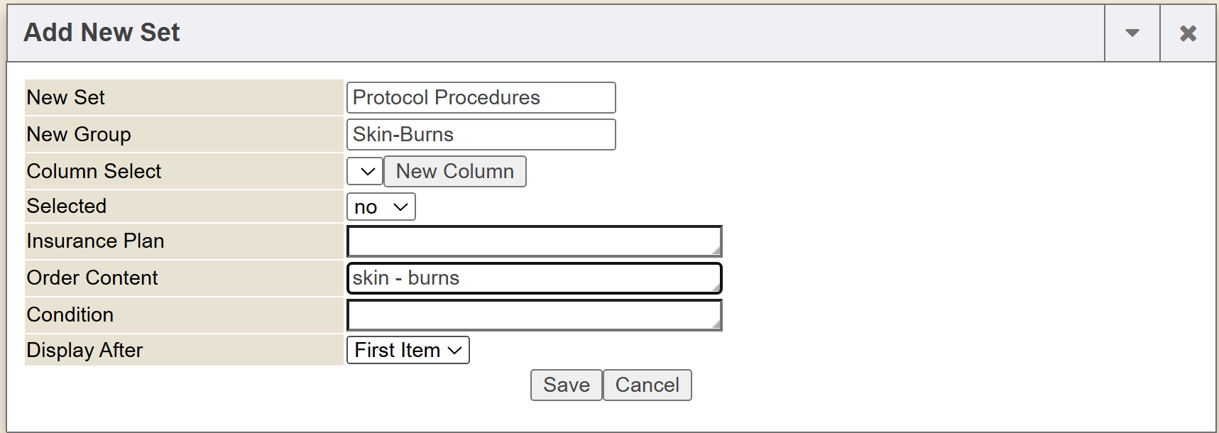 Then you add the specific order item contents that would relate to that protocol group. Order items one would possibly order for that protocol event.