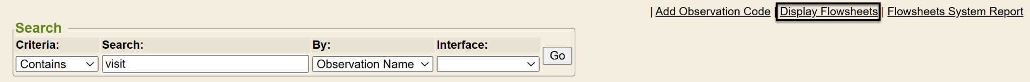 From the Control sidemenu tab, go to Observation Codes tab and click the Display Flowsheets hyperlink found at the top right corner of the screen.