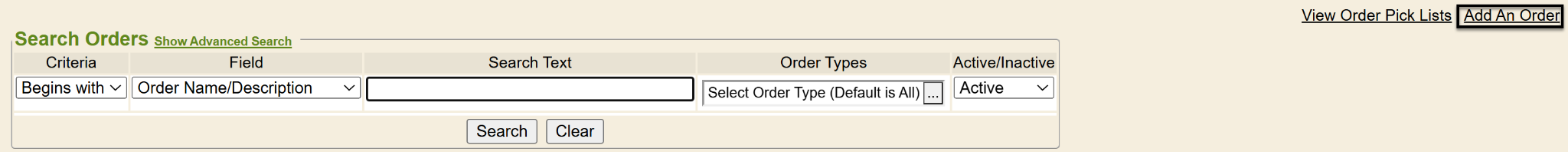 This is done by going to the Control sidemenu tab, then to Orders-List Editor tab, and then click the Add An Order hyperlink