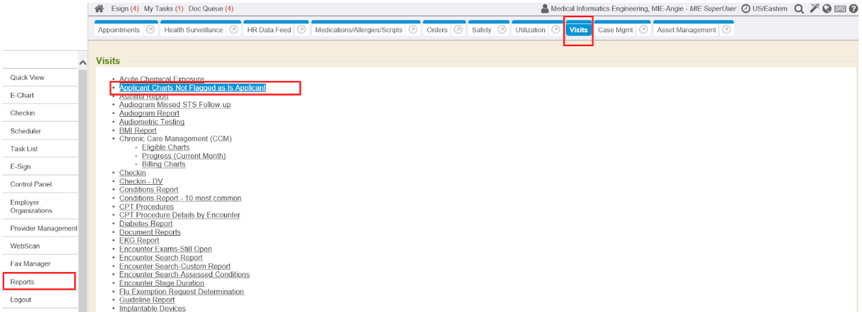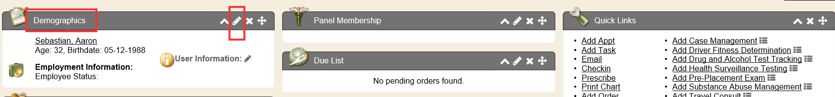 From the Quick View sidemenu tab, a portlet is available named Pre-Placement Exam Worklist. This lists any Pre-Placement Exam encounters that are still open status (not archived & closed) and what Stage they are in (if applicable due to drug screen results still pending before a written opinion-Pre-Placement can be completed).
